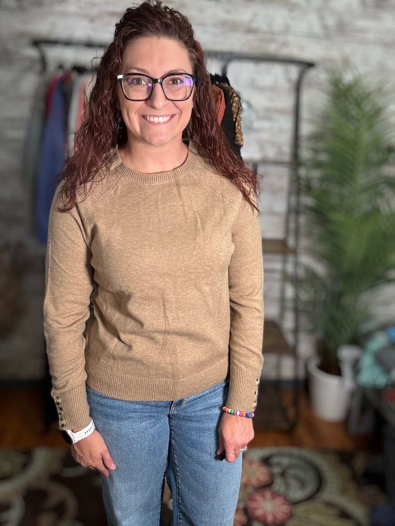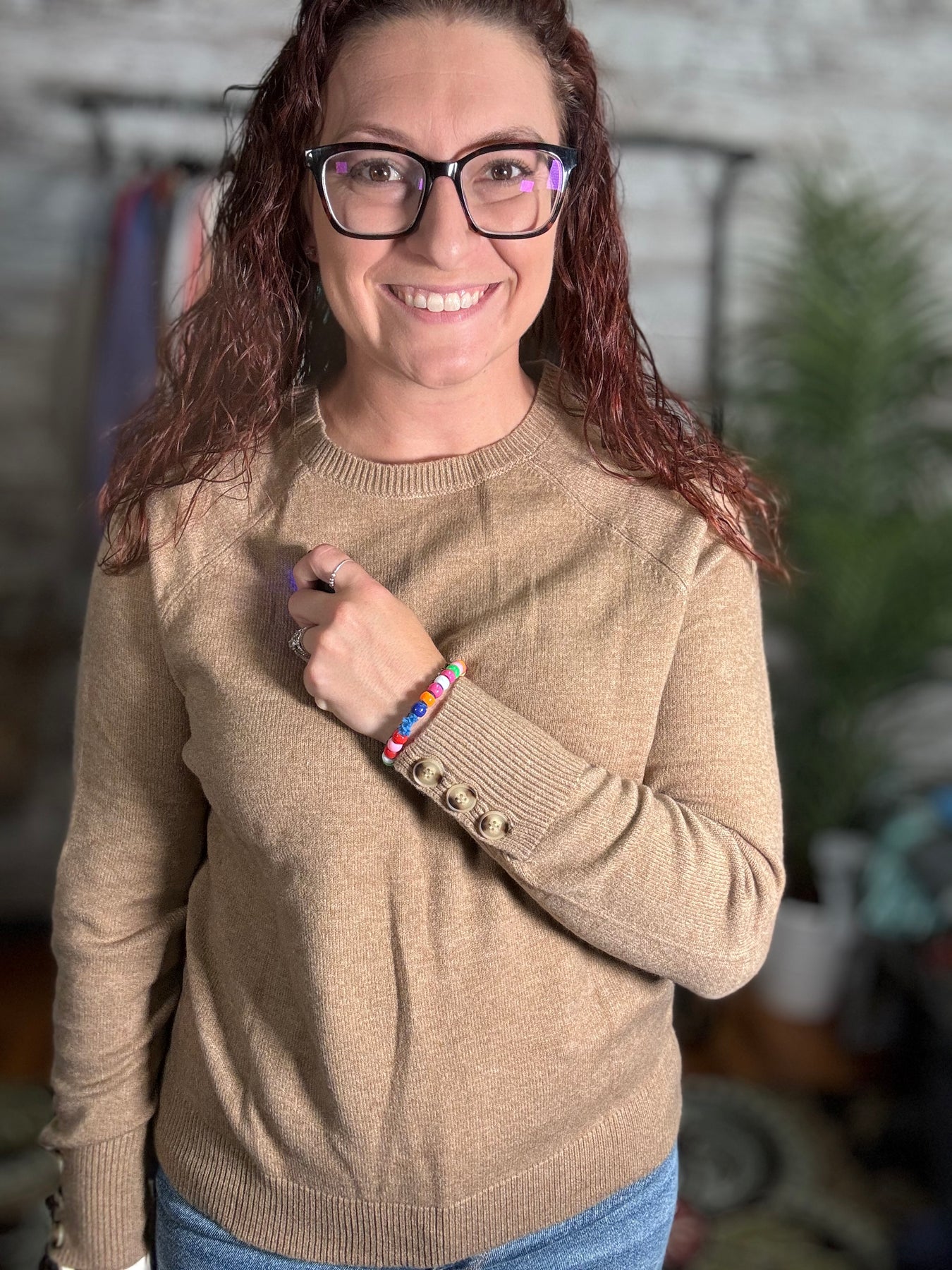 Buttoned Cuffs Raglan Sleeve Knit Sweater