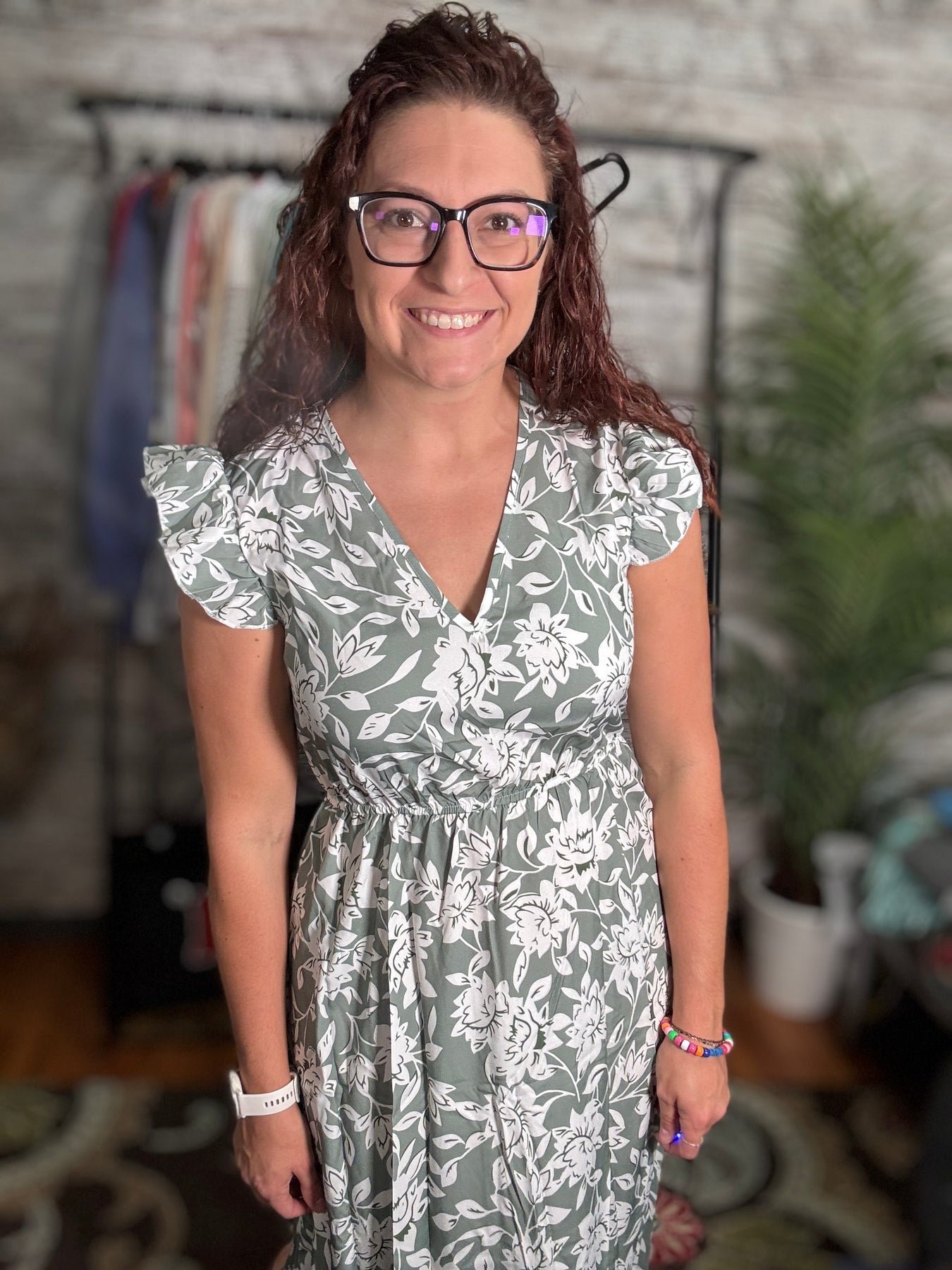This dress features an all-over floral print with soft, ruffle-trimmed sleeves, bringing a feminine yet playful vibe perfect for sunny days. Designed with a V neckline and an A-line silhouette, the cinched waist with tie detail enhances your natural shape for a flattering profile. Made from lightweight, breathable fabric with a soft drape, this sleeveless midi dress keeps you cool and stylish from brunch to beach. Ideal for vacations, garden parties, or casual streetwear, pair it with sandals or wedges for effortless chic.