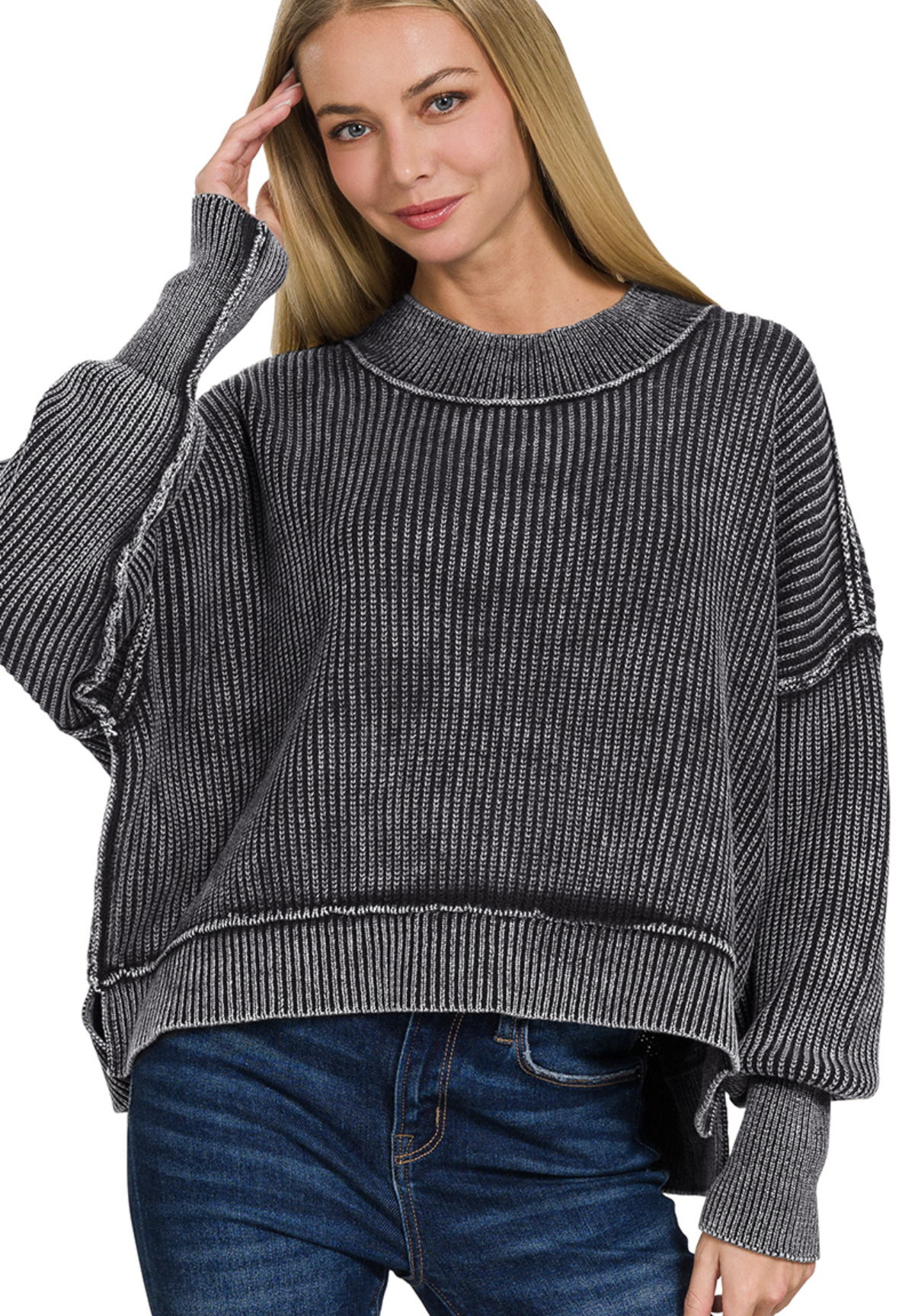 Snuggle into this playful oversized cotton sweater that brings comfort and style together. Its wide boxy fit and stretchy ribbed knit let you move freely, while the high-low hemline and side slits add a fun twist to your look. With cozy drop shoulders and banded ribbed trims, this cropped sweater is perfect for layering or rocking solo on breezy days.