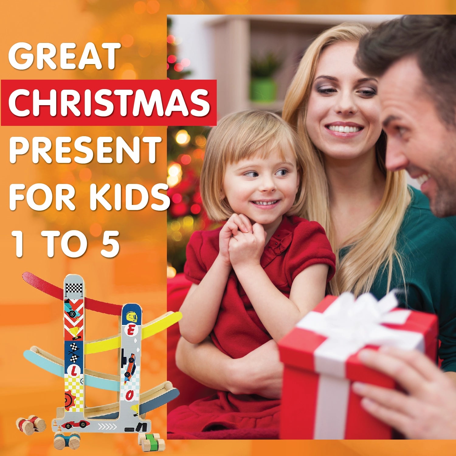 • PERFECT HANDS-ON EDUCATIONAL TOY RACER: Our well-built toddler race track is designed to help children explore hand-eye coordination, fine motor skills, and problem-solving while having fun. Additionally, our stacked racer track encourages toddlers to cooperate, share, and take turns.